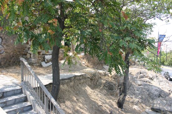 The remains of the retaining wall and the carved rock foundation of its extention which were discovered in 1962 and were responsible for the diversion of the new Arditous st. allow us to know the extent of the temple site